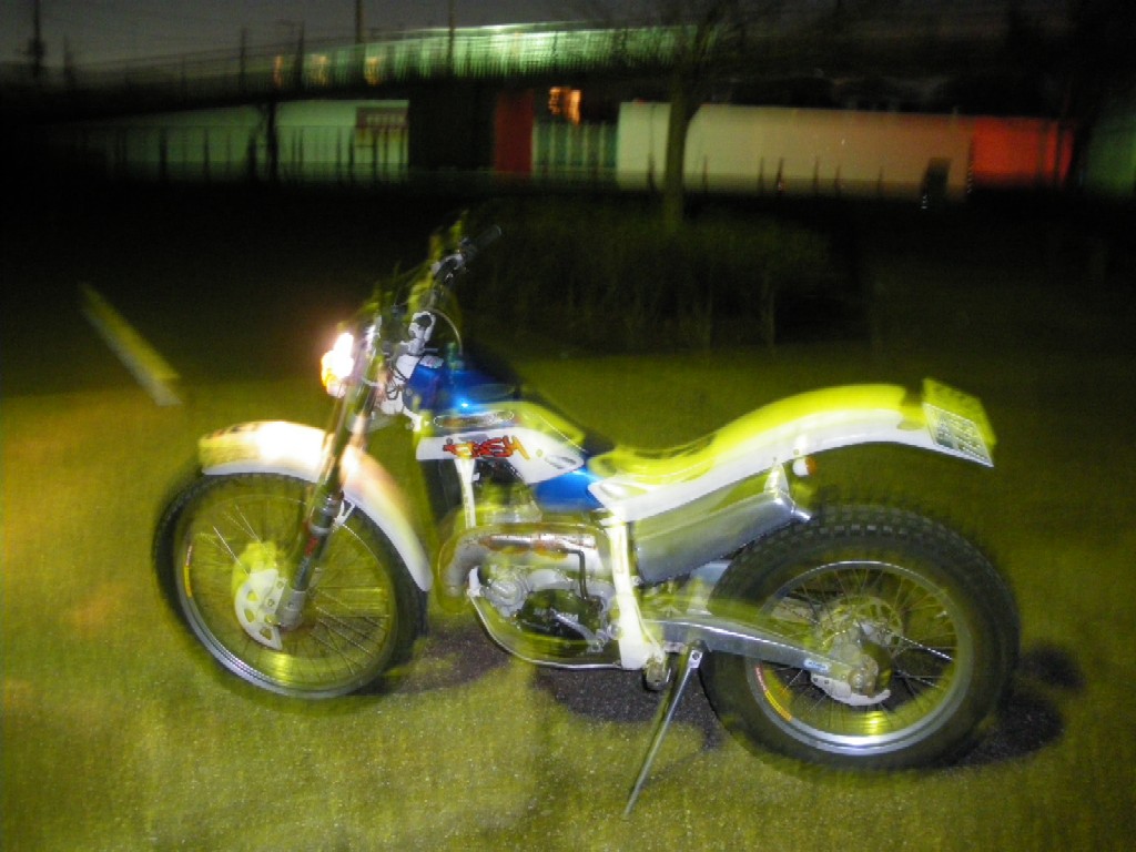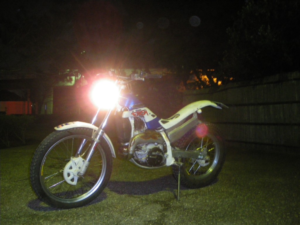この車、レギュレーターがないのか、逝かれているのか、回転を上げるとヘッドランプの球が切れるので24V用を入れてある。(詳しくはGASGAS HPで調べることとするが・・)