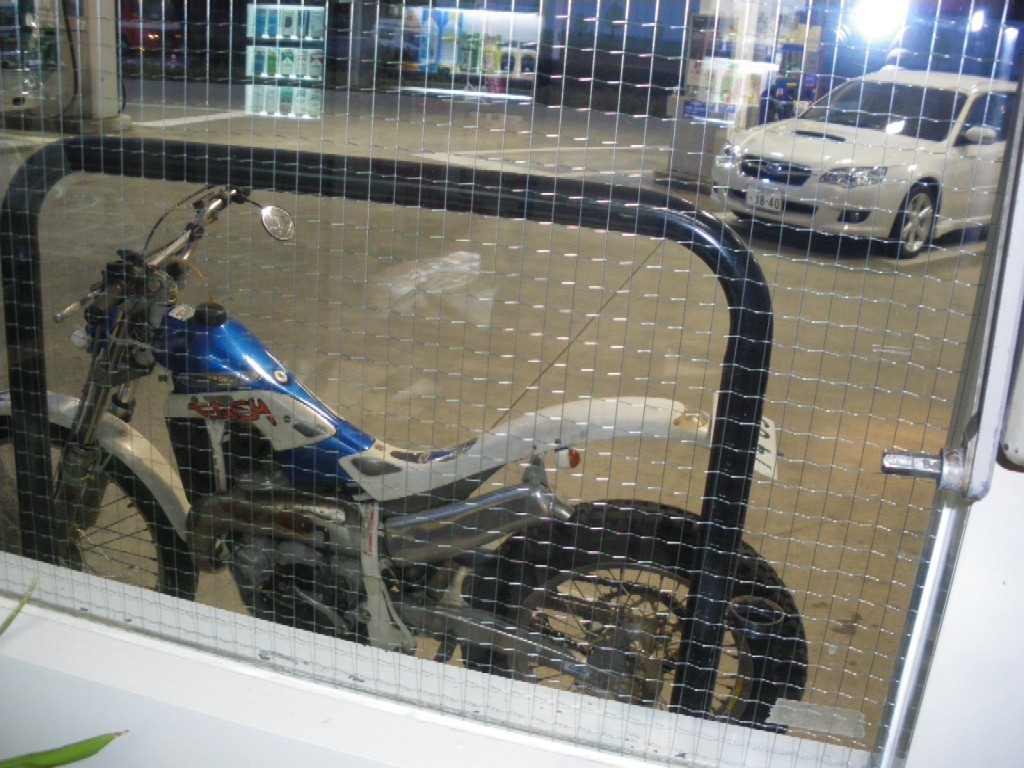 昨夕、公園駐車場より乗って帰って来たときに、クラッチの切れが悪いというのもあって、家の前まで排気音を轟かせて戻ってしまったところ、大家殿が勝手口のドアを開けてこちらを確認していたので、今日は昼食の時間でもあるし、ナンバーは付いているのではあるが、気を使って未登録車のときのように公園駐車場まで押して行ったでござる。