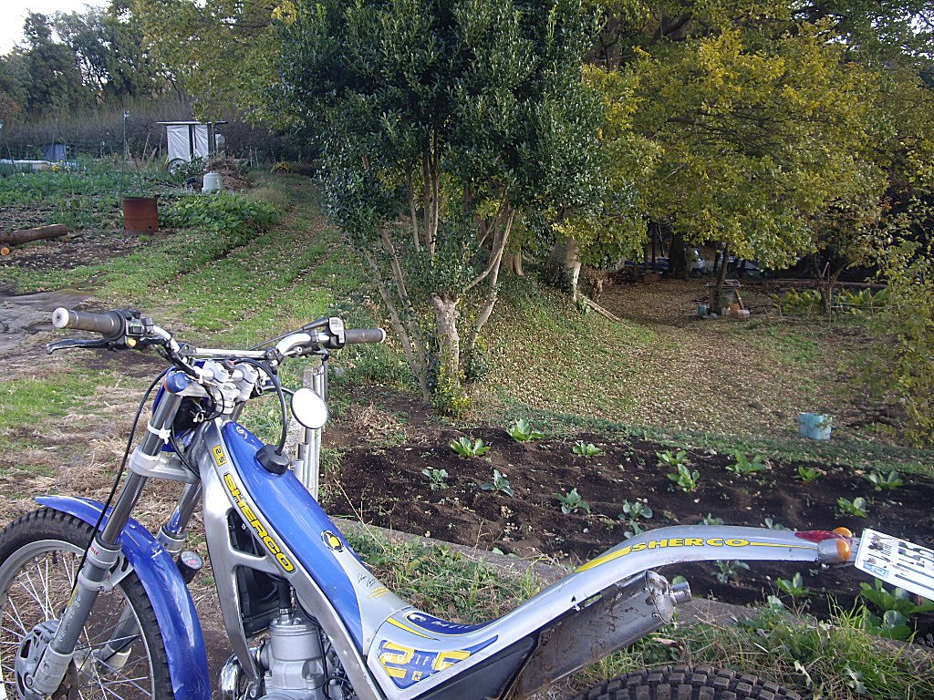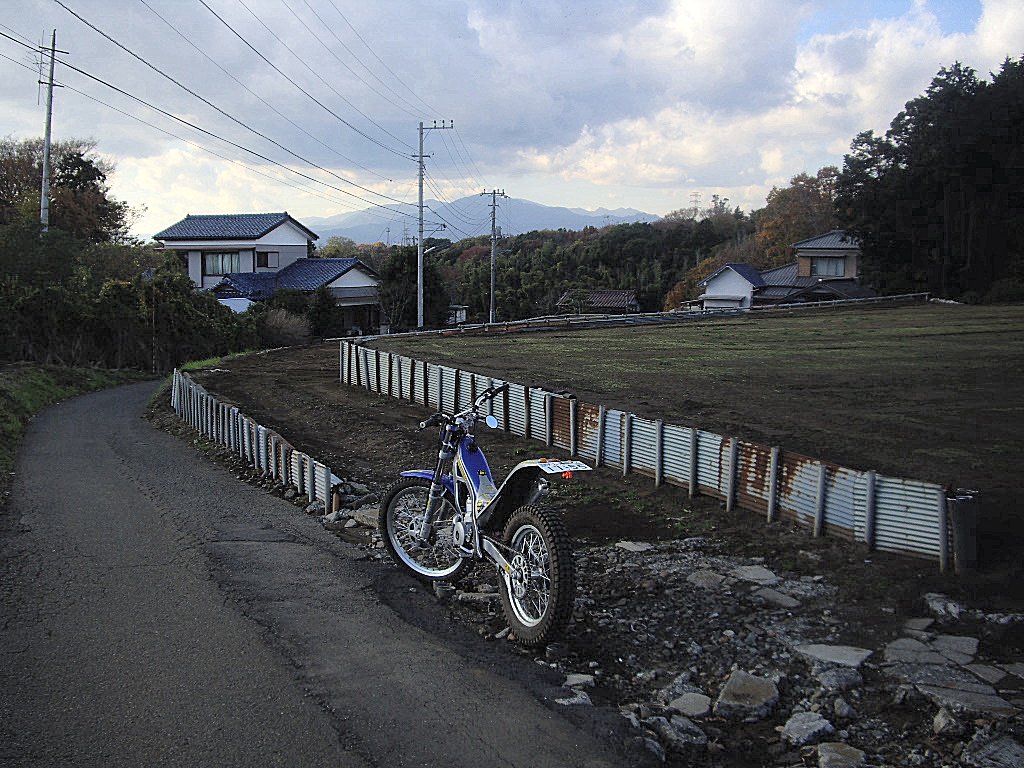 下見に行き、オートバイで行くには一寸狭いけれど、丘の上の住宅地まで獣道のように続いていることを確認してインする。