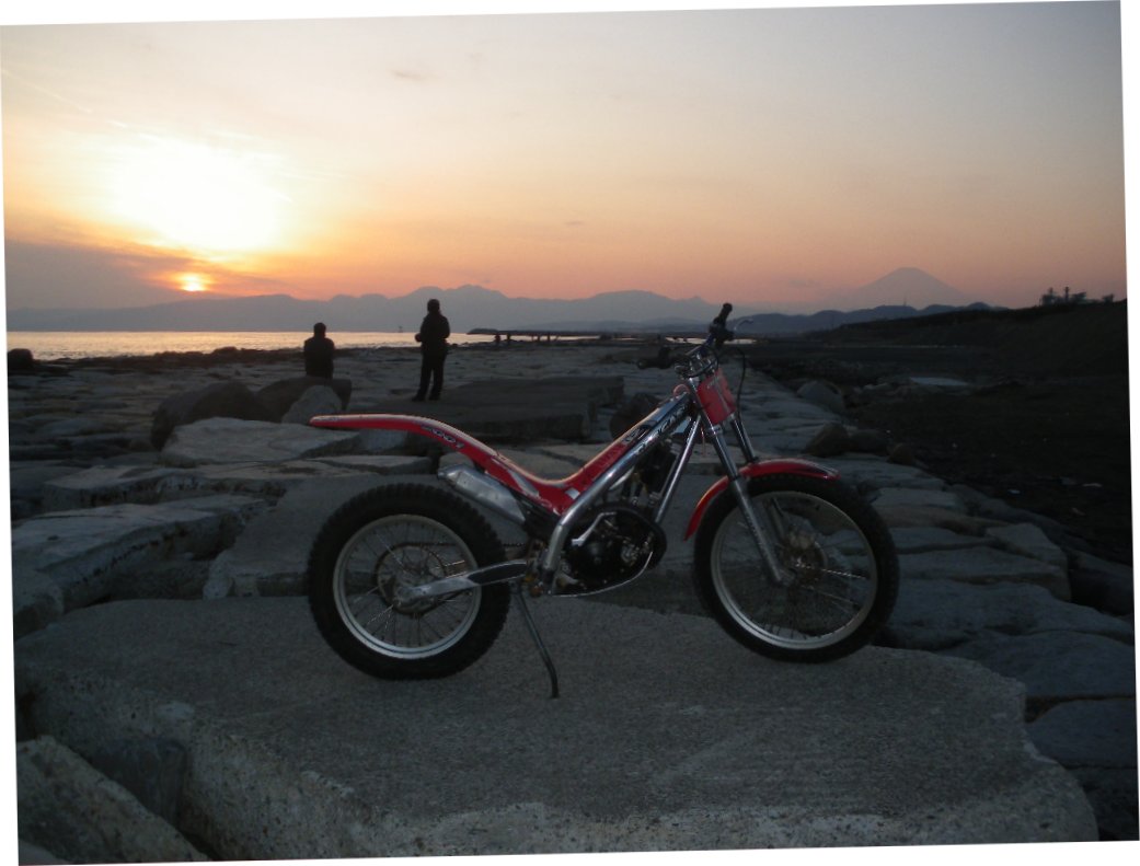 ひとつ、先日の「浜で有音」の際、「美味しい岩」の下見中に、マシン風にて倒れり、取っ手即ちハンドルに掛け置きたる兜即ち、そうその通りヘルメット傷付きたり・・and それから前脚フロントフォーク捩れたり・・!!