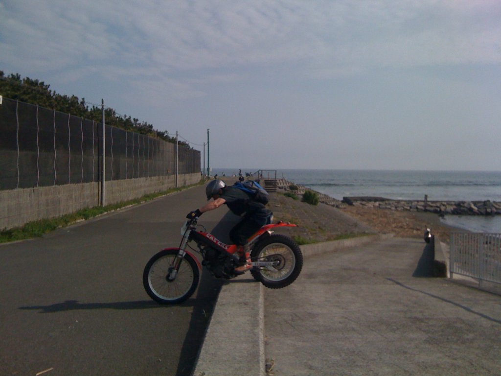 サザンビーチから機関始動に移りたい処であったが・・既に多くの人々が休日を楽しんでいた・・少年サッカークラブの連中もビーチ占拠中であった・・要するに、上谷さんがウォームアップしている間、そこへ向かってサイクリングロードを押し続けていた・・吾輩の押しているマシンもサイクル・・モーターサイクルであったのだが・・。