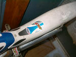 F・フェンダーに貼ってあった「津南ワンハーフデイ・トライアル」のシールを剥がしたら、新品同様のピカピカ真っ白なフェンダーが現れた。