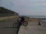 サザンビーチから機関始動に移りたい処であったが・・既に多くの人々が休日を楽しんでいた・・少年サッカークラブの連中もビーチ占拠中であった・・要するに、上谷さんがウォームアップしている間、そこへ向かってサイクリングロードを押し続けていた・・吾輩の押しているマシンもサイクル・・モーターサイクルであったのだが・・。
