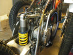 ヘッドライト、メーター、ハーネスを交換中、スピードセンサーのラインが後輪ディスク迄ハーネスよりスウィングアームの中を通って続いている。そのラインのスウィングアームへの入り口を確かめる為チャンバーを外したので、序でにガス台で焙ってみた。
